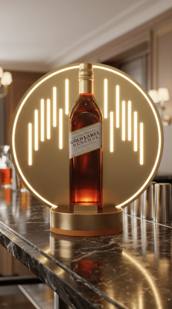 Diseñamos y fabricamos glorificadores que convierten una botella en el centro de atención del bar. Con iluminación, materiales premium y diseños que capturan la esencia de cada marca. Trabajamos con las principales marcas globales de spirits y licores para crear piezas que hacen su producto irresistible en el punto de venta.